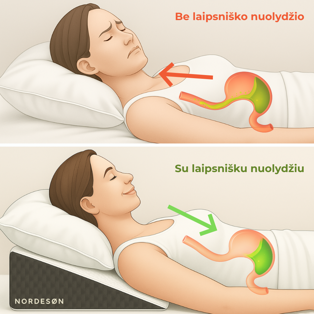 Gravitacija dirba jūsų naudai – rūgštis lieka skrandžio apačioje, o jūs mėgaujatės ramesniu miegu.